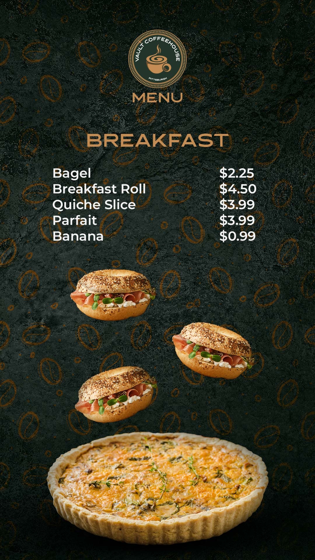 Vault Coffeehouse aims to spoil you by satisfying your cravings! Check out our variety of delicacies ranging from pastries, sweets, smoothies and many more goodies including our signature coffees & teas as well.
